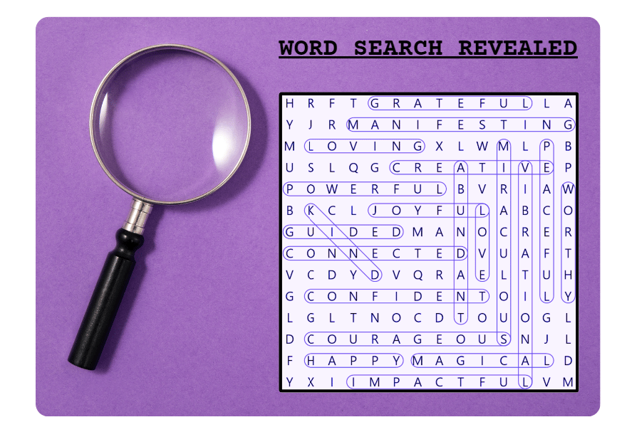 🔎 Word Search Grid: Plunge into this week's word search adventure. The first three words you spot will serve as your personal affirmations, designed to elevate your spirits and enrich your entire week!